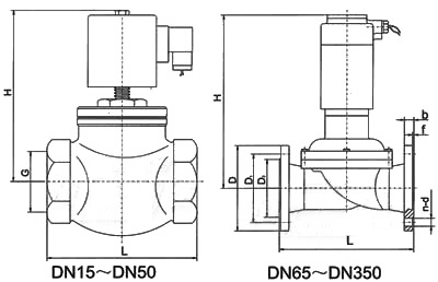 本閥DNl5—50系一次開(kāi)閥的直動(dòng)式低壓電磁閥,DN65—300系二次開(kāi)閥的先導(dǎo)式電磁閥。直動(dòng)式電磁閥在接受電信號(hào)后,電磁力直接將閥塞提起,介質(zhì)流通;斷電后,電磁力消失,閥塞在自重和彈簧力作下下落,介質(zhì)斷流。