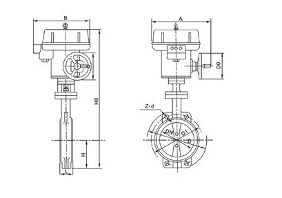 電動(dòng)對(duì)夾式軟密封蝶閥 外形尺寸