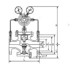 YK43X氣體減壓閥屬于先導活塞式減壓閥.由主閥和導閥兩部分組成.主閥主要由閥座、主閥盤、活塞、缸套、彈簧等零件組成。導閥主要由閥座、閥瓣、膜片、彈簧、調(diào)節(jié)彈簧等零件組成。通過調(diào)節(jié)調(diào)節(jié)彈簧壓力設定出口壓力,利用膜片傳感出口壓力變化,通過導閥啟閉驅(qū)動活塞調(diào)節(jié)主閥節(jié)流部位過流面積的大小,實現(xiàn)減壓穩(wěn)壓功能。