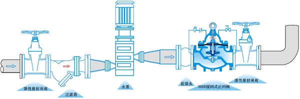 300X緩閉止回閥由主閥、單向閥、針閥、球閥、微形過(guò)濾器和壓力表組成水力控制接管系統(tǒng)。利用水力自動(dòng)操作,可使主閥的開(kāi)啟或關(guān)閉速度。防止水鍾水擊的產(chǎn)生,以達(dá)到緩閉消聲的效果。