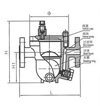 該閥利用浮力原理,浮球根據(jù)凝結(jié)水量的多少隨水位的變化而作升降,自動調(diào)節(jié)閥座孔的開度,連續(xù)排放凝結(jié)水。當(dāng)凝結(jié)水停止進(jìn)入時(shí),浮球靠自重降到底部,關(guān)閉排水閥座孔。由于排水閥座孔在凝結(jié)水位以下,水汽自然分離,形成水封,達(dá)到無蒸汽泄漏。