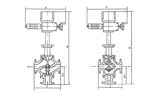 電動(dòng)三通調(diào)節(jié)閥 主要外形尺寸